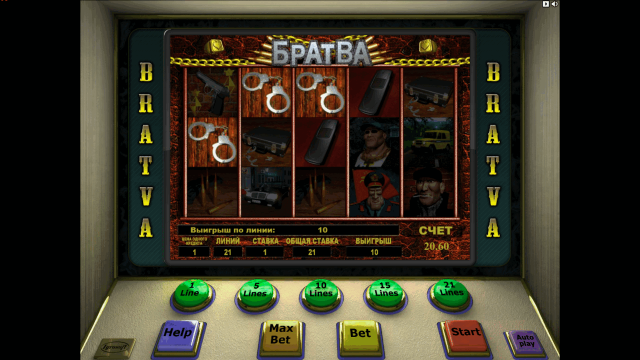 Игровой автомат Bratva — азартное развлечение, созданное разработчиками Unicum. Преимущества слота заключены в наличии тематического оформления, разнообразии бонусных опций. Главный приз фиксирован. Посетители виртуального зала смогут выиграть 10 000 монет.