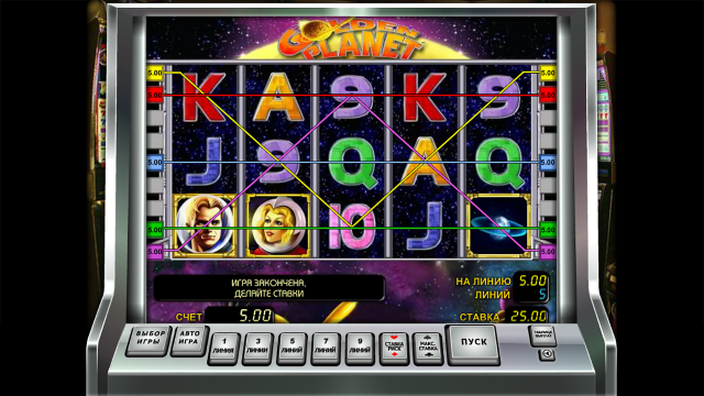 Онлайн-слот Золотая Планета выпущен производителем Novomatic. Дата релиза — февраль 2012 года. Интерфейс симулятора предложен на русском языке. Панель управления содержит несколько клавиш: