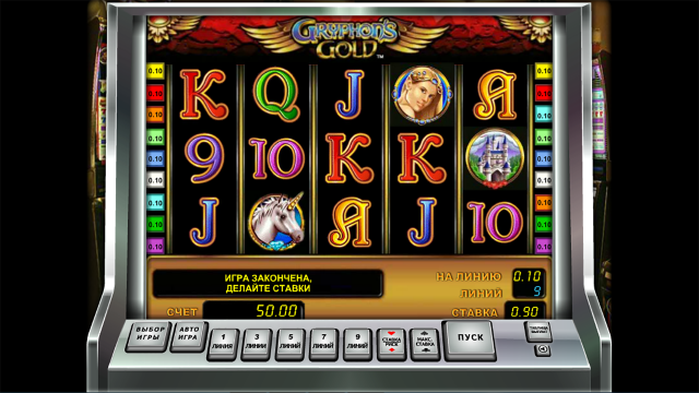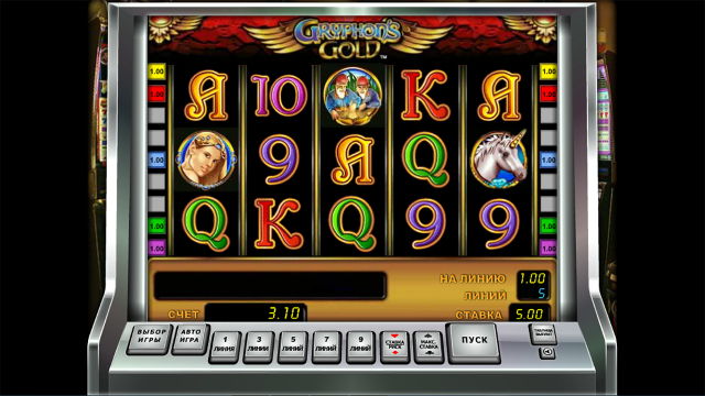 Слот Золото Грифона создан компанией Novomatic. Оформление игры отображает сказочную тематику. В слоте действуют простые правила, предоставляется удобная панель управления, а также многоуровневая система ставок. Этот игровой автомат отличается достаточно высокими множителями, которые позволяют получать крупные вознаграждения. Также в игре задействованы выгодные призовые опции.